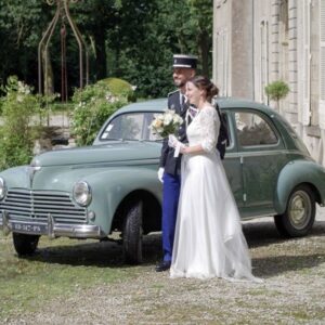 La Traction arbore encore une belle carrosserie noir miroir. C’est pourquoi, il arrive qu’elle se suffise à elle même. Vous ajoutez un couple de mariés, et le tout vous produit de belles photos.