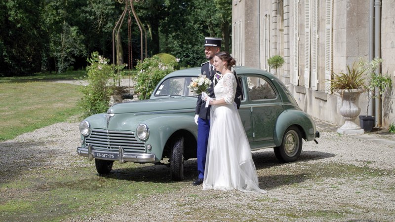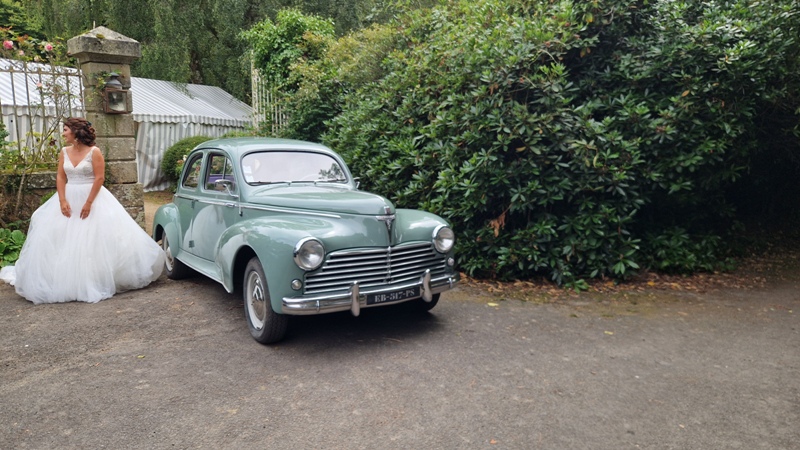 La Traction arbore encore une belle carrosserie noir miroir. C’est pourquoi, il arrive qu’elle se suffise à elle même. Vous ajoutez un couple de mariés, et le tout vous produit de belles photos.